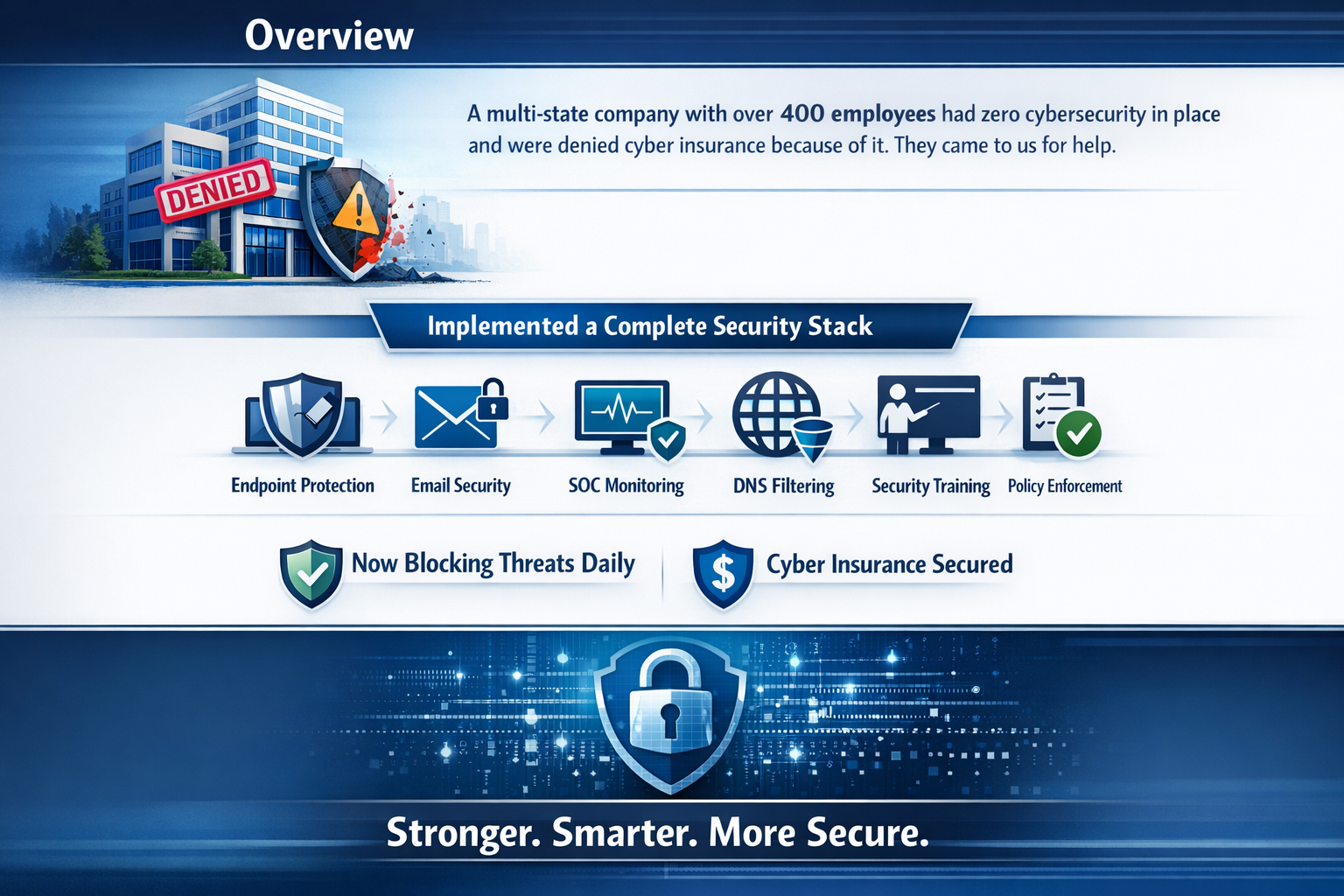 Now they block threats every single day. They secured cyber insurance. And they are stronger, smarter, and significantly more secure than ever.